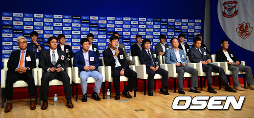 13일 오전 서울 아산청책연구원에서 진행된 '2012 K리그 스플릿 시스템 그룹A'(서울, 전북, 수원, 울산, 포항, 부산, 제주, 경남) 기자회견에서 서울 최용수 감독이