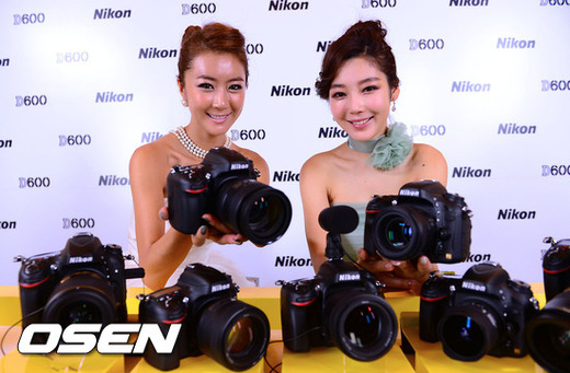 13일 오후 서울 소공동 롯데호텔에서 진행된 니콘 레전드 전략발표회에서 모델들이 신제품 D600을 들고 포즈를 취하고 있다.