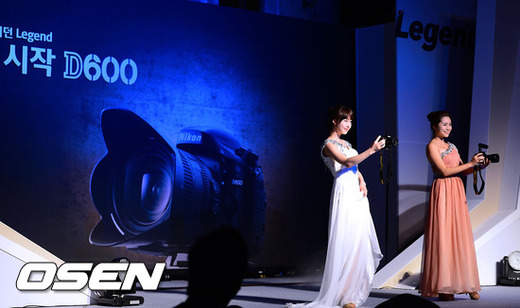 13일 오후 서울 소공동 롯데호텔에서 진행된 니콘 레전드 전략발표회에서 모델들이 신제품 D600을 들고 포즈를 취하고 있다.
