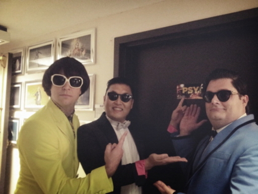싸이가 공개된 사진 속에는 싸이와 함께 현지 배우 두 명의 모습의 장난기 넘치는 모습이 담겨있다. 현지 배우 두 명은 '강남스타일'의 뮤직비디오에 출연한 개그맨 유재석의 분장과 싸이의 분장을 하고 있어 보는 이의 폭소를 자아낸다. 싸이는 "또 다른 나와 뚜기형"이라는 글로 사진에 대해 설명해 웃음을 더했다.