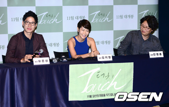 20일 오전 신촌 아트레온극장에서 진행된 영화 '터치'(민병훈 감독) 제작보고회에서 유준상 김지영 민병훈감독이 질의응답 시간을 갖고 있다.