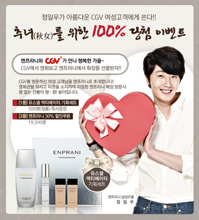 화장품 브랜드 엔프라니가 CGV와 제휴를 맺고 가을 맞이 ‘추녀(秋女)를 위한 100% 당첨 이벤트’를 11월 30일까지 진행한다.