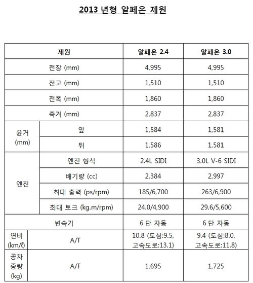 한국지엠주식회사(한국지엠)는 기존 알페온(Alpheon)에 편의 및 안전 사양을 대폭 보강하고, 주행 성능과 연비를 크게 향상시킨 ‘2013년형 알페온’을 출시했다고 5일 밝혔다.