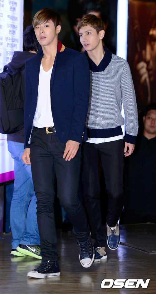 5일 오후 서울 코엑스에서 진행된 동방신기 신규 앨범 출시기념 팬 사인회에 유노윤호와 최강창민이 입장하고 있다.