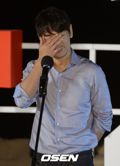 7일 오후 해운대 비프빌리지 야외무대에서 진행된 '내가 고백을 하면' 행사에서 김태우가 예지원의 발언으로 난감한 표정을 짓고 있다.