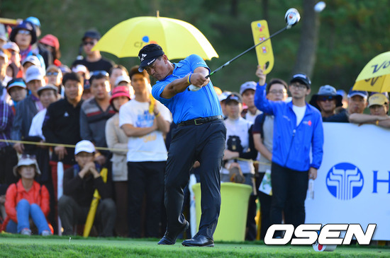 최경주가 드라이브샷을 날리고 공을 바라보고 있다. / soul1014@osen.co.kr