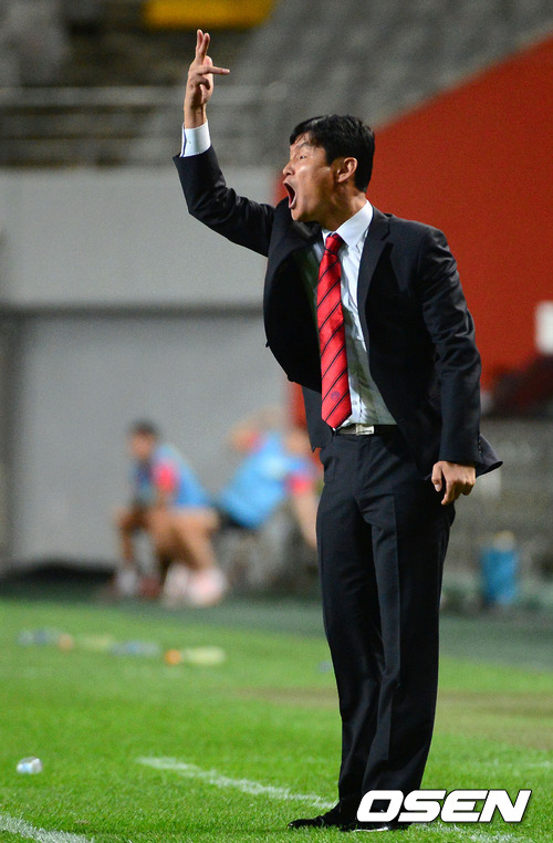 7일 오후 서울월드컵경기장에서 열린 '현대오일뱅크 K리그 2012' 35라운드 FC 서울과 경남 FC의 경기, 후반 서울 최용수 감독이 선수들에게 작전을 지시하고 있다.