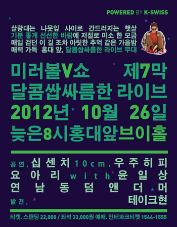 미러볼 V쇼는 26일 오후 8시 홍대 브이홀에서 열리는 라이브 공연으로 케이스위스 브랜드 블로그 및 페이스북 을 통해 누구나 초대권을 응모할 수 있다. 이번 미러볼 V쇼에서 만나게 되는 뮤지션의 패션 스타일을 추천하고, 공연에 가고 싶은 이유를 댓글로 남기면 추첨을 통해 총 10명을 선정, 1인 2매씩 초대권을 증정한다.