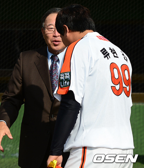 한화 김응룡(71) 감독이 한화 사령탑으로 공식·취임했다. 15일 대전구장에서 열린 취임식 및 상견례를 통해 한화선수단과 처음으로 얼굴을 마주했다. 이날 가장 큰 관심은 8년 만에 현장으로 돌아온 김응룡 감독과 지도자로 첫 발을 떼는 이종범 주루코치이지만 그에 못지않게 '괴물 에이스' 류현진(25) 문제도 큰 관심이었다.
