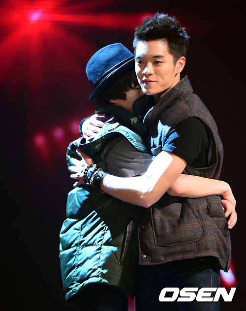 2일 오후 서울 동대문구 Mnet ‘슈퍼스타K4’(이하 ‘슈스케4’) 생방송 4라운드에서 탈락된 김정환이 유승우와 포옹을 하고 있다.
