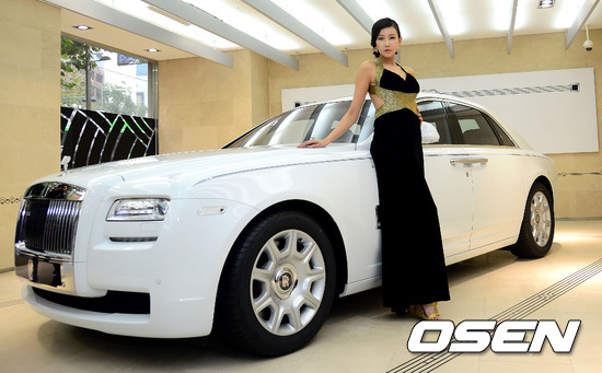 28일 오전 서울 강남구 청담동 롤스로이스 매장에서 진행된 '롤스로이스 고스트 아르데코' 발표회에서 모델이 롤스로이스 고스트 아르데코를 소개하고 있다.