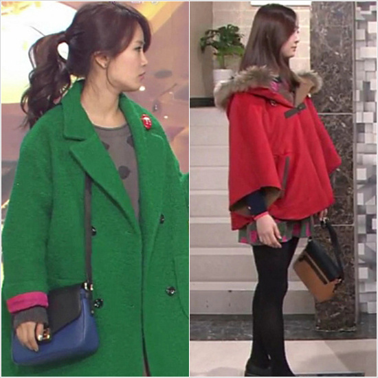 다솜은 KBS2 ‘닥치고 패밀리’에서 김지민과 컬러만 다른 같은 가방을 매치했다. 레드 컬러의 케이프 코트 스타일링에 브라운 컬러가 돋보이는 숄더백으로 클래식하고 깔끔한 룩을 연출했다. 블랙과 어우러진 컬러 블록 디테일이 세련되어 보인다.
