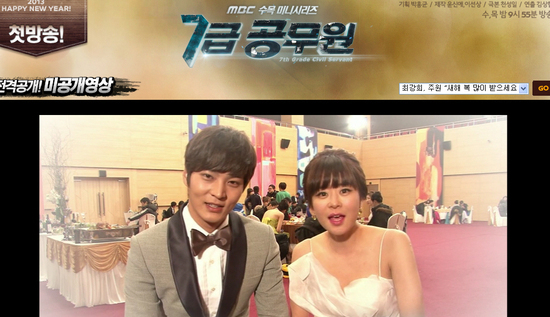 두 사람은 각각 하얀 드레스와 수트를 차려입고 "2013년 새해에 인사드리는 7급 공무원, 많은 관심과 사랑 부탁드립니다. 새해 복 많이 받으세요"라고 인사했다.