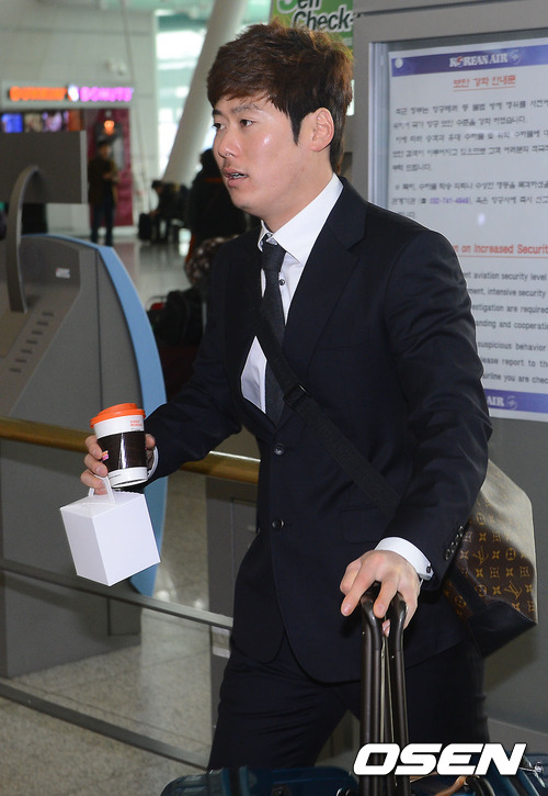 두산 이원석이 출국수속을 밟기 위해 카운터에 들어서고 있다