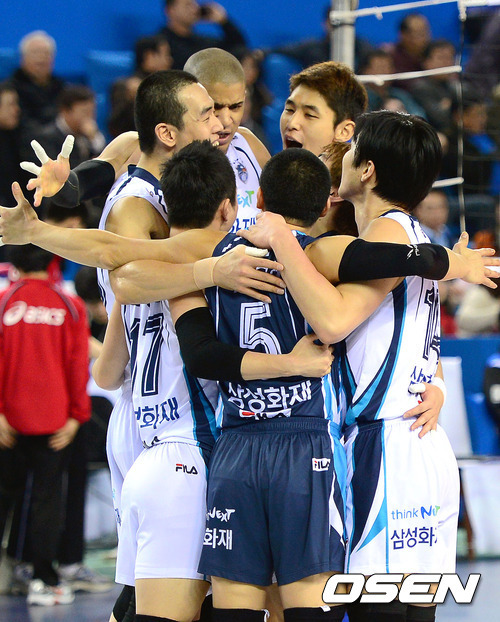 삼성화재는 24일 아산 이순신실내체육관에서 열린 ‘2012-2013 NH농협 V-리그’ 남자부 러시앤캐시와의 경기에서 레오-박철우 쌍포의 맹활약과 한 수 위의 집중력을 앞세워 3-0(25-22 25-19 26-24)으로 이겼다. 승점 3점을 추가한 삼성화재(승점 43)는 4연승 행진을 달리며 2위 현대캐피탈(승점 33)과의 승점차를 10점으로 벌렸다. 반면 5연승을 내달렸던 러시앤캐시(승점 23)는 기세가 한 번 꺾였다.