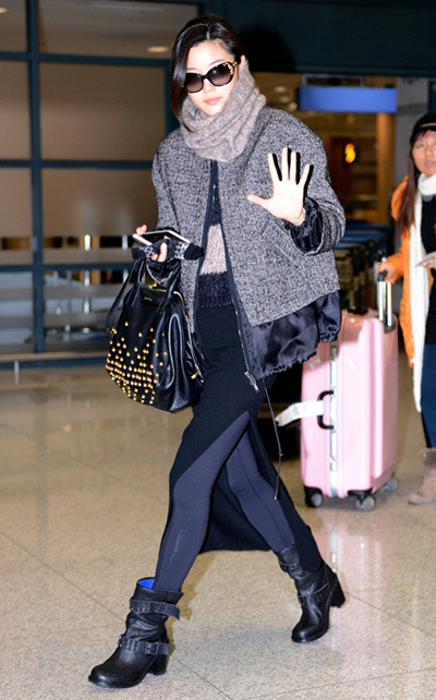여기에 아우터를 두겹으로 레이어드 하는 등 감각적인 패션센스를 자랑했다. 공항 필수 아이템인 블랙 선글라스도 잊지 않고 챙겨 도회적인 매력을 한층 더 부각시켰다.