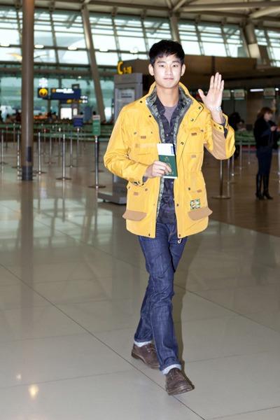 배우 김수현은 야상의 전형적 색상인 카키를 피하고, 컬러풀한 야상을 착장해 세련된 공항패션을 완성했다.