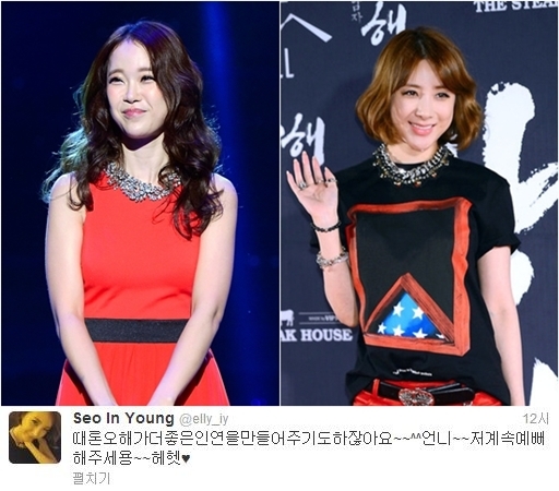 이어 서인영은 “언니~ 저 계속 예뻐해주세요. 헤헷”이라며 백지영에게 애교 섞인 메시지를 남기기도 했다.