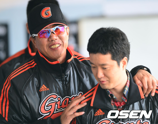경기 전 롯데 김시진 감독이 덕아웃에서 환하게 미소짓고 있다.
