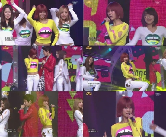 특히 지나는 큰 노출 없이도 바디라인을 터치하는 도발적인 퍼포먼스로 객석의 시선을 사로잡았다. 또한 ‘웁스’라는 가사와 함께 입에 손을 올리는 깜찍한 포즈로 색다른 매력을 드러냈다.