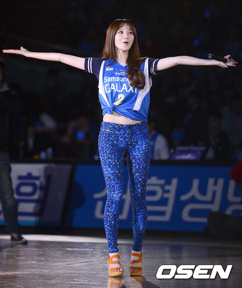 27일 오후 서울 잠실실내체육관에서 열린 'KB 국민카드 2012-2013 프로농구' 6강 플레이오프 서울 삼성과 인천 전자랜드의 경기, 하프타임때 그룹 다비치가 축하공연을 펼치고 있다.