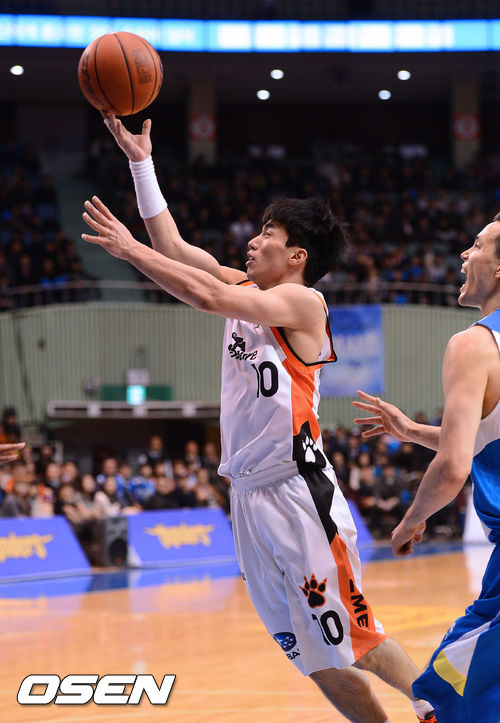 27일 오후 서울 잠실실내체육관에서 열린 'KB 국민카드 2012-2013 프로농구' 6강 플레이오프 서울 삼성과 인천 전자랜드의 경기, 3쿼터 전자랜드 이현민이 레이업슛을 성공하고 있다.
