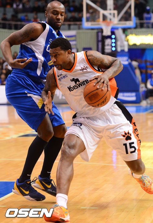 27일 오후 서울 잠실실내체육관에서 열린 'KB 국민카드 2012-2013 프로농구' 6강 플레이오프 서울 삼성과 인천 전자랜드의 경기, 3쿼터 전자랜드 포웰이 돌파 시도하고 있다
