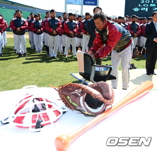 이 자리에는 김기태 감독 이하 선수단 전원이 참석해 올 시즌 선수단의 무사안녕과 승리를 기원하는 '승리기원제'를 지냈다.