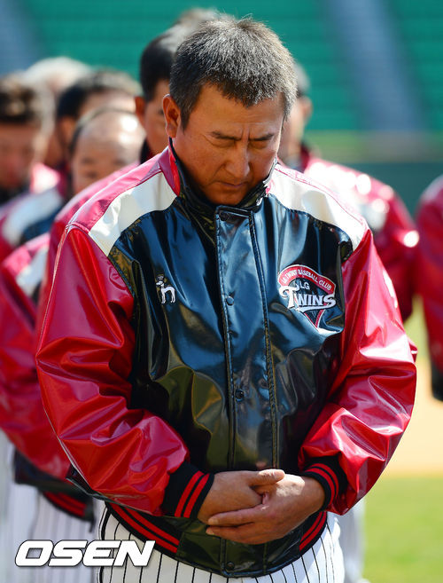 29일 오후 서울 잠실구장에서 열린 LG 트윈스의 2013시즌 승리 및 안전 기원제에서 김기태 감독이 경건하게 고개를 숙이고 있다.