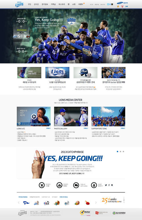 2011년 웹어워드코리아 최우수상 수상, 2012년 선수들이 유닛이 돼 움직이는 등 혁신적인 개편을 했던 여세를 몰아 이번에도 새로운 컨셉트의 홈페이지로 구성했다.