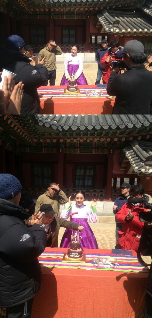'장옥정' 측은 29일 보도자료를 통해 촬영장에서 생일을 맞이한 김태희의 모습이 담긴 사진을 공개했다.