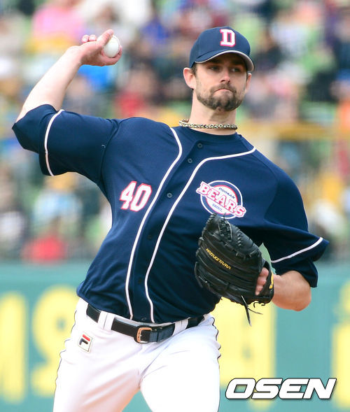 1회말 두산 선발투수 니퍼트가 힘차게 공을 던지고 있다.