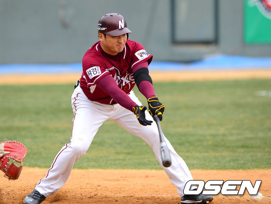 30일 오후 광주 무등구장에서 열린 '2013 한국야쿠르트 세븐 프로야구' KIA 타이거즈와 넥센 히어로즈의 경기 4회초 2사 1루 넥센 이택근이 헛스윙 후 방망이를 던지고 있다