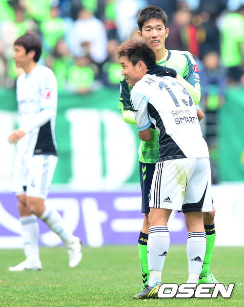 경기 종료 직후 수원 서정진과 전북 김정우가 인사를 나누고 있다.