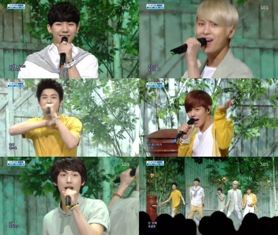 제아파이브는 31일 방송된 SBS 음악 프로그램 '인기가요'에 출연해 '헤어지던 날'을 열창했다.