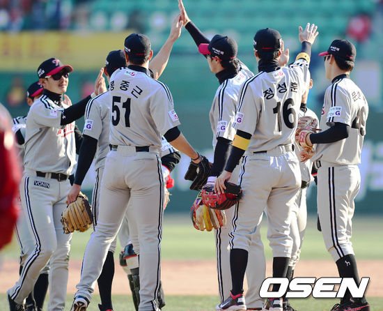 31일 오후 인천 문학구장에서 '2013 한국야쿠르트 세븐프로야구' SK 와이번스와 LG 트윈스의 경기가 열렸다. 선발 우규민의 호투를 앞세운 원정팀 LG가 홈팀 SK를 4-1로 꺾고 개막 2연승을 내달렸다.