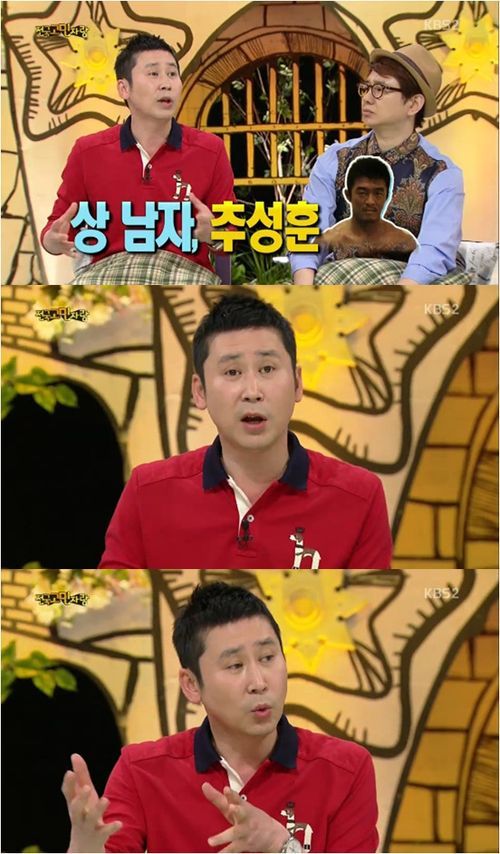 신동엽은 1일 방송된 KBS 2TV 예능프로그램 ‘안녕하세요’에서 “추성훈 씨는 양복 입을 때 아무것도 안 입는다”고 깜짝 공개했다.