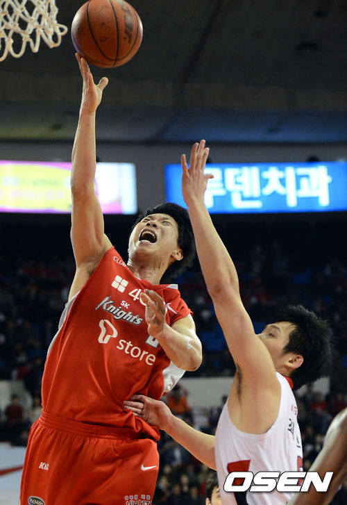 3일 오후 잠실학생체육관에서 열린 '2012-2013 KB국민카드 프로농구 4강 PO 2차전' 서울 SK와 안양 KGC의 경기 1쿼터 SK 박상오가 레이업슛을 시도하고 있다.