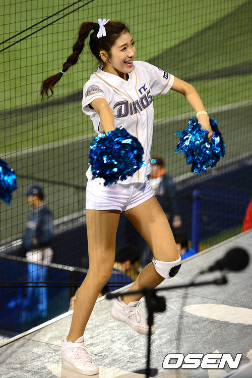 3일 오후 창원 마산구장에서 열린 '2013 한국야쿠르트 세븐 프로야구' NC 다이노스와 롯데 자이언츠의 경기, 치어리더 김연정이 공연을 펼치고 있다.
