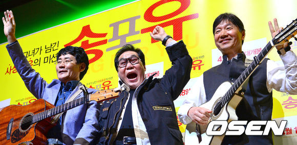 5일 오후 서울 회기동 경희대학교 평화의 전당에서 열린 영화 '송포유' 무비 콘서트에서 세시봉이 포즈를 취하고 있다