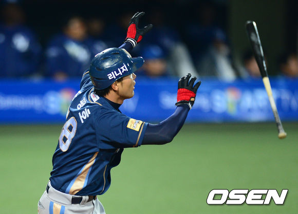 5일 오후 대구시민운동장 야구장에서 열린 2013 한국야쿠르트 세븐프로야구 삼성 라이온즈와 NC 다이노스의 경기, 5회초 무사에서 NC 조평호가 좌월 솔로 홈런을 치고 있다.
