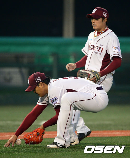 2회초 2사에서 넥센 김영민이 LG 현재윤의 기습번트 타구를 놓치고 있다../jpnews@osen.co.kr