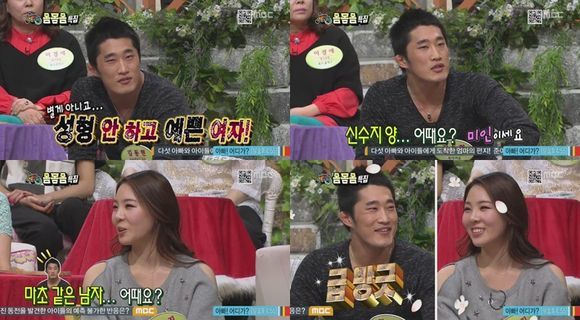 이날 방송에서 이상형으로 "성형 안하고 예쁜 여자"를 꼽은 김동현은 신수지가 어떻냐는 질문에 "미인이다"라며 쑥스러워했다.