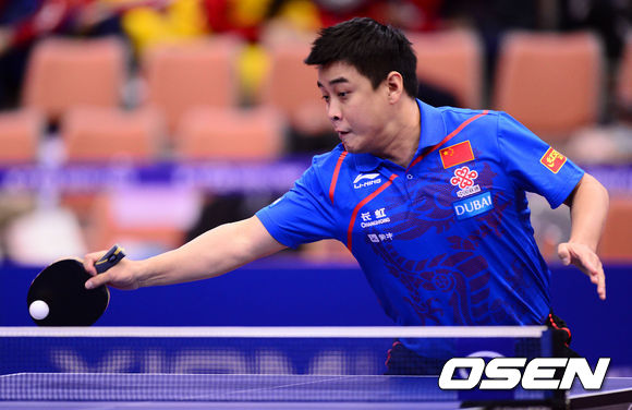 중국 왕하오가 리턴 공격을 시도하고 있다.