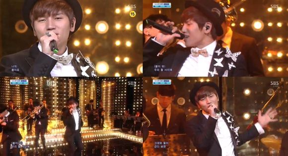 케이윌은 7일 오후 방송된 SBS 가요 프로그램 '인기가요'에 출연해 신곡 '러브 블러썸(Love Blossom)'을 열창했다.