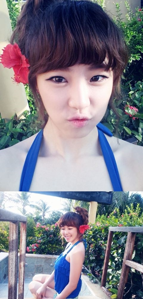그룹 시크릿의 전효성이 머리에 꽃을 달고 사이판에서 찍은 사진을 공개했다.