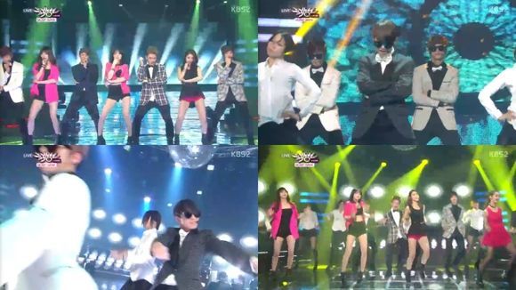 이날 무대는 ‘뮤직뱅크’가 지난해 연말 1위 선정 방식에 변화를 줬음에도 올 봄 싸이 '젠틀맨' 발표와 함께 일부 네티즌들로부터 '혹시 싸이를 겨냥한 것 아니냐'는 의혹을 받았던 것과 ‘젠틀맨’ 뮤직비디오가 KBS 심의를 통과하지 못하면서 방송 부적합 판정을 받은 데 대한 찬반 논란들을 피해가는 고육지책으로 풀이된다.
