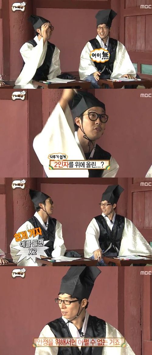 이어 그는 태조 왕건이 왕권 강화를 위해 호족들과 결혼을 통해 연합을 했다며 “유재석과 같다”는 강사의 말에 “맞다. 우리를 안고 가는 것을 보면 그런 것 같다”고 동조했다. 또 그는 “길도 하차한다는 거 안고 가지 않냐”며 가만히 있던 길을 당황케 했다.