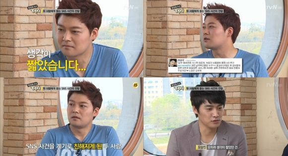 오상진은 14일 새벽 방송된 tvN 예능 프로그램 '현장토크쇼 택시'에 출연해 "그 글을 올릴 때 비를 맞으면서 파업 집회를 하고 있었다"며 "생각이 짧았다. 하지만 그 후로 연락을 주고 받으면서 친해졌다. 회사를 그만 뒀을 때 걱정을 많이 해줬다"고 말했다.