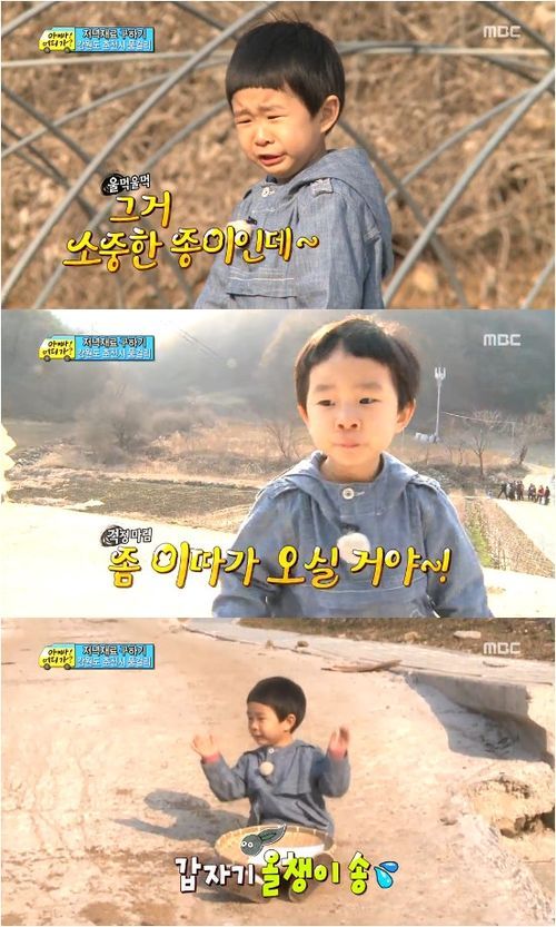 그는 강아지에게 “엄마 보고 싶어? 조금 있다가 오실거야”라고 귀여운 위로를 하는가 하면 혼자 걷다가 넘어진 후 씩씩하게 “올챙이 한 마리”라면서 올챙이송을 불러 안방극장의 미소를 폭발하게 만들었다.